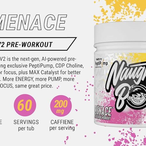 Naughty Boy Menace V2 Pre Workout – AI Powered Pre Workout Powder for Men & Women | Best Pre-Workout Energy Drink Supplements | Peptipump, Citrulline, Beta Alanine | 60 Servings